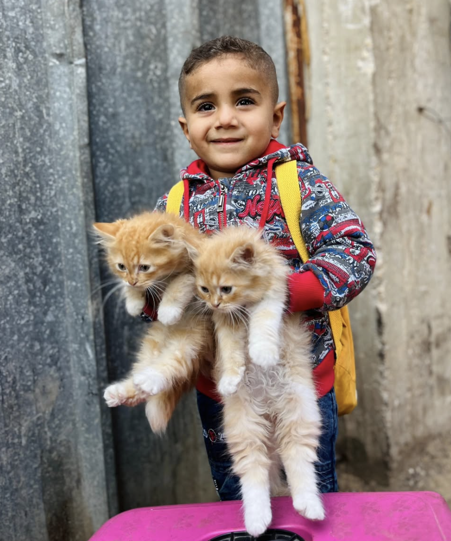 Hamoudi with his kittens in Gaza | Photo credit Aboud Almadhoun