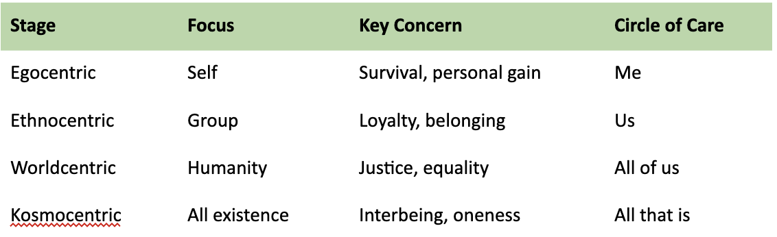 4. Kosmocentric (All that Is) – “I am part of the whole”